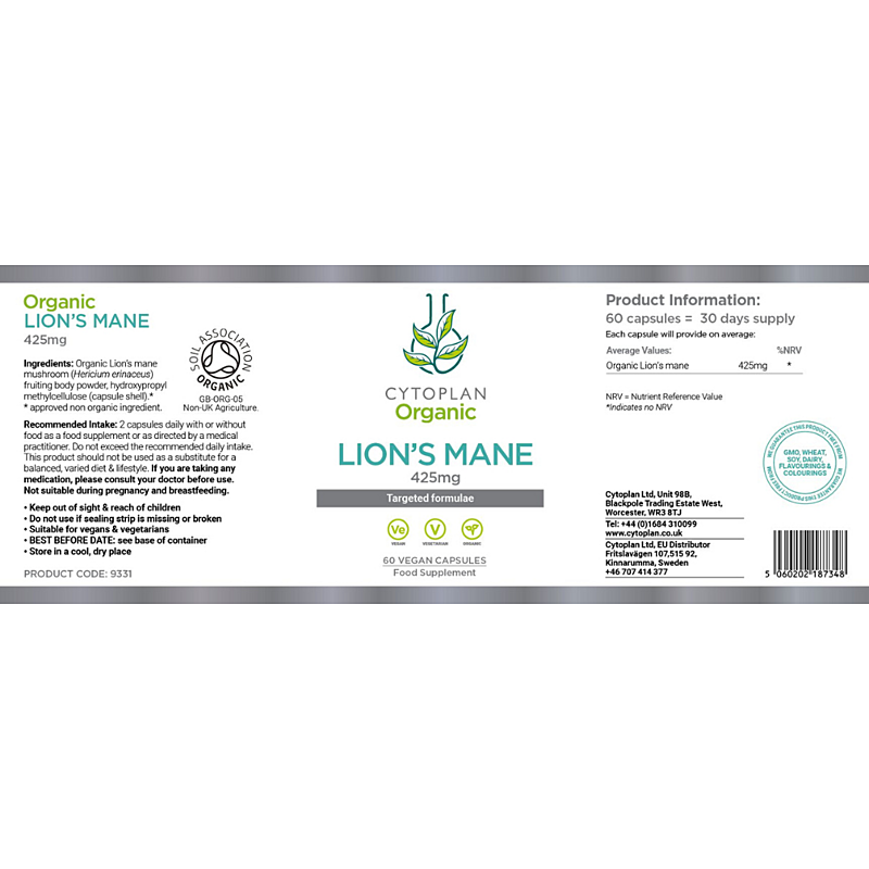 Cytoplan Herícium obsahuje 425 mg organickej Levej hrivy v jednej kapsule, získanej zo 100 % plodnice huby. Plodnica je prirodzeným zdrojom širokého spektra prirodzene sa vyskytujúcich zlúčenín, ktoré sú pre túto hubu typické. Tento výživový doplnok je vyrobený výhradne z plodnice, ktorá obsahuje najvyššie množstvá prirodzených polysacharidov a ďalších bioaktívnych látok. Produkt je certifikovaný ako organický a spĺňa prísne štandardy čistoty a udržateľnosti. Neobsahuje pesticídy ani herbicídy a predstavuje jednoduchý spôsob, ako zaradiť leviu hrivu do každodenného režimu.