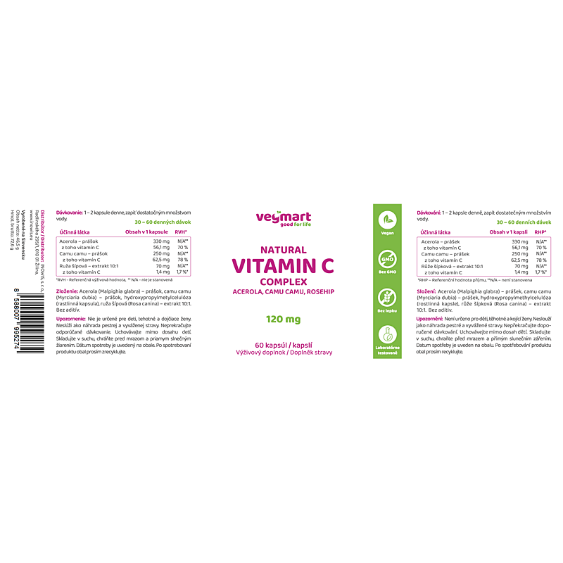 | Originálny názov výrobcu: | Natural Vitamin C complex 120 mg – Acerola, Camu camu, Rosehip |